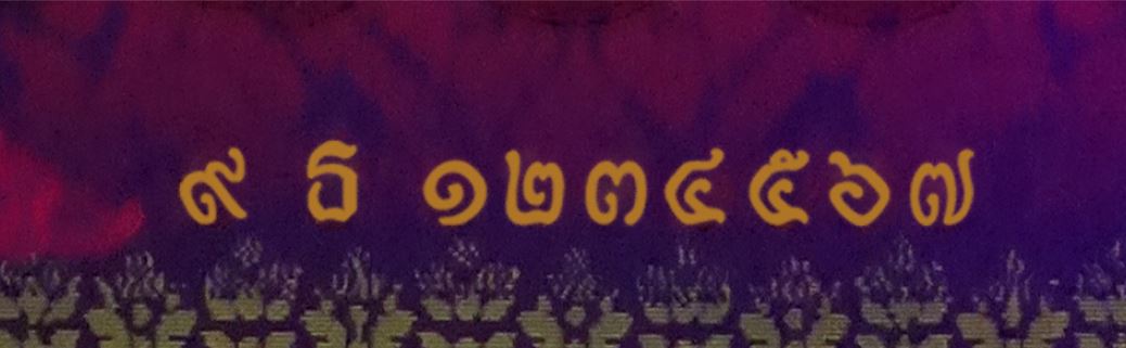 พระบรมสาทิสลักษณ์ ลายรัศมีเบื้องหลังพระบรมสาทิสลักษณ์ และลายหน้าครุฑประกอบลายช่อกระหนก พิมพ์ด้วยเส้นนูนสีน้ำตาลเข้ม จะรู้สึกสะดุดเมื่อสัมผัสด้วยปลายนิ้วมือ องค์ประกอบทั้งหมดนี้รวมทั้งลายพรรณพฤกษาสีเหลืองและสีแดงซึ่งอยู่บริเวณเบื้องซ้ายและเบื้องขวาของพระบรมสาทิสลักษณ์ พิมพ์ทับบนลายพื้นสีเหลือบทอง