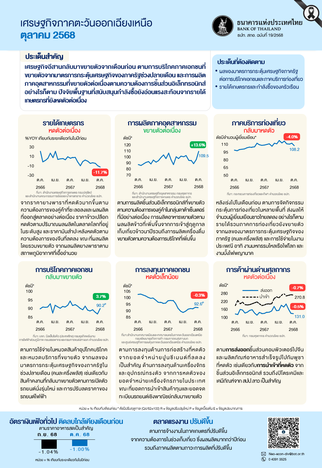 แถลงข่าวภาวะเศรษฐกิจการเงินภาคตะวันออกเฉียงเหนือ เดือนตุลาคม 2568