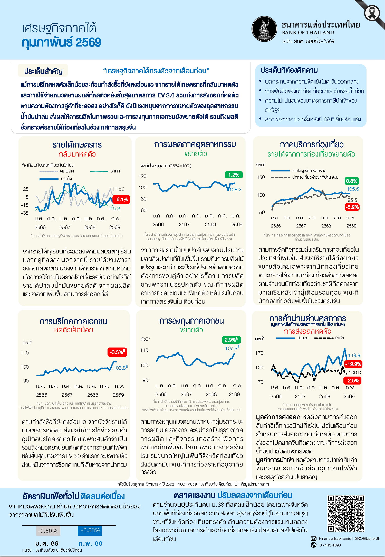 ข้อมูลเพิ่มเติม : ส่วนเศรษฐกิจการเงิน 1-3 ธนาคารแห่งประเทศไทย สำนักงานภาคใต้