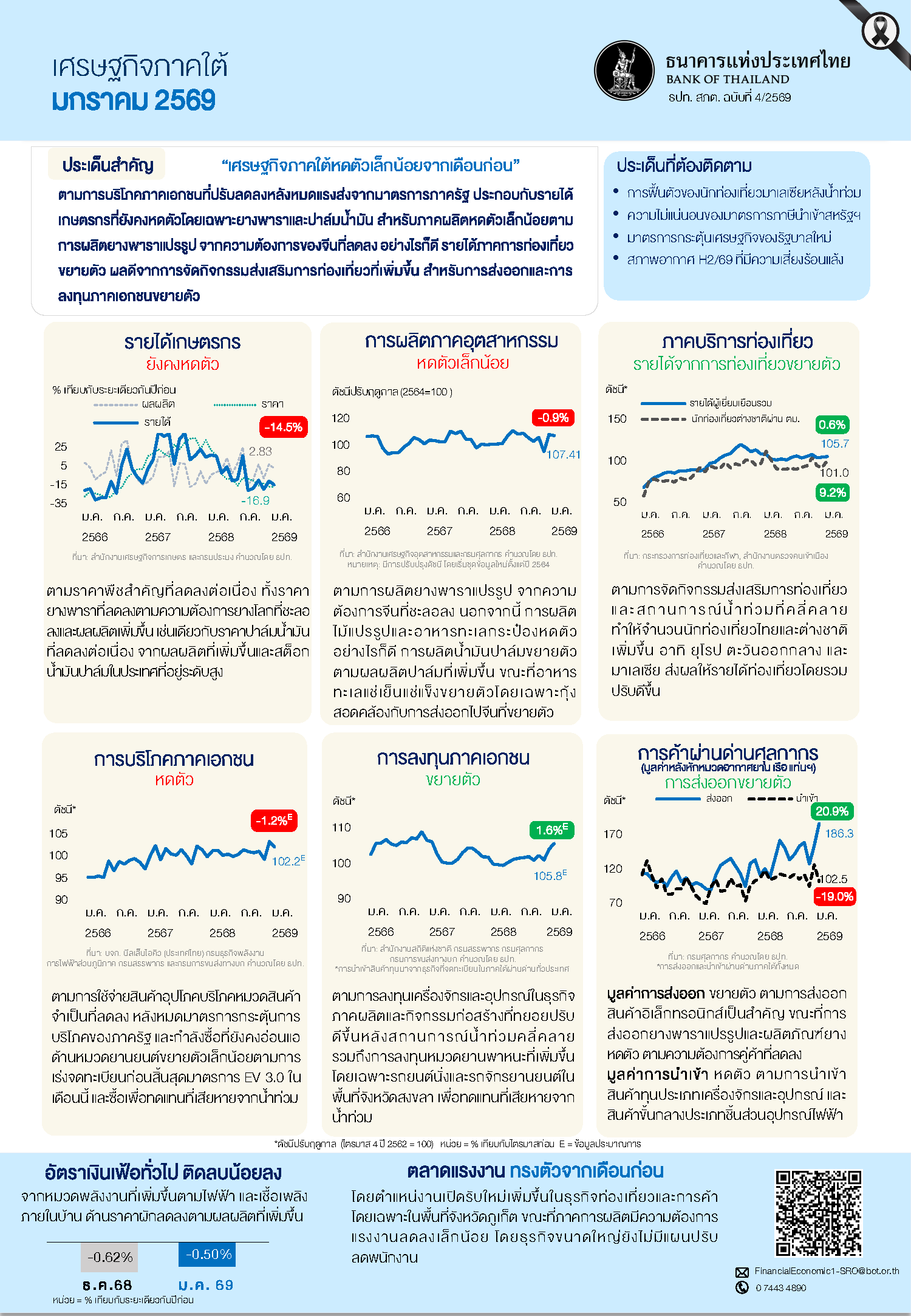 ภาวะเศรษฐกิจการเงินภาคใต้ เดือนมกราคม 2569